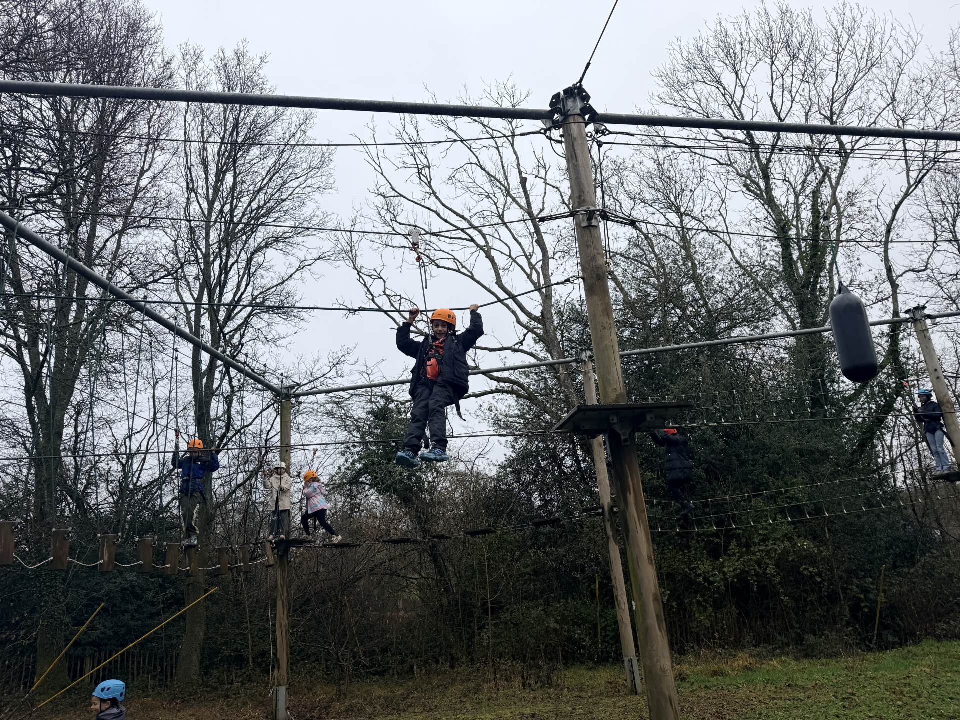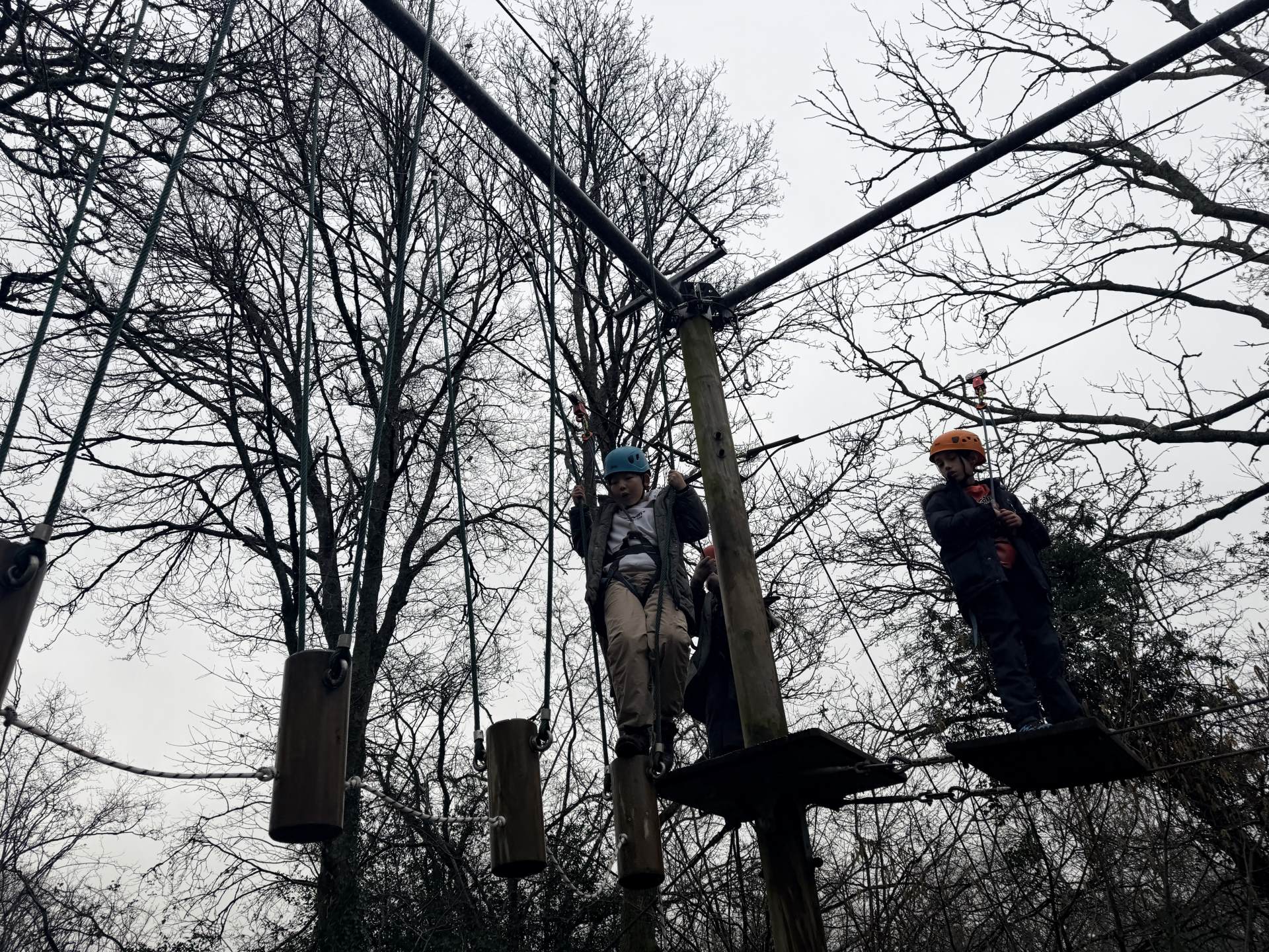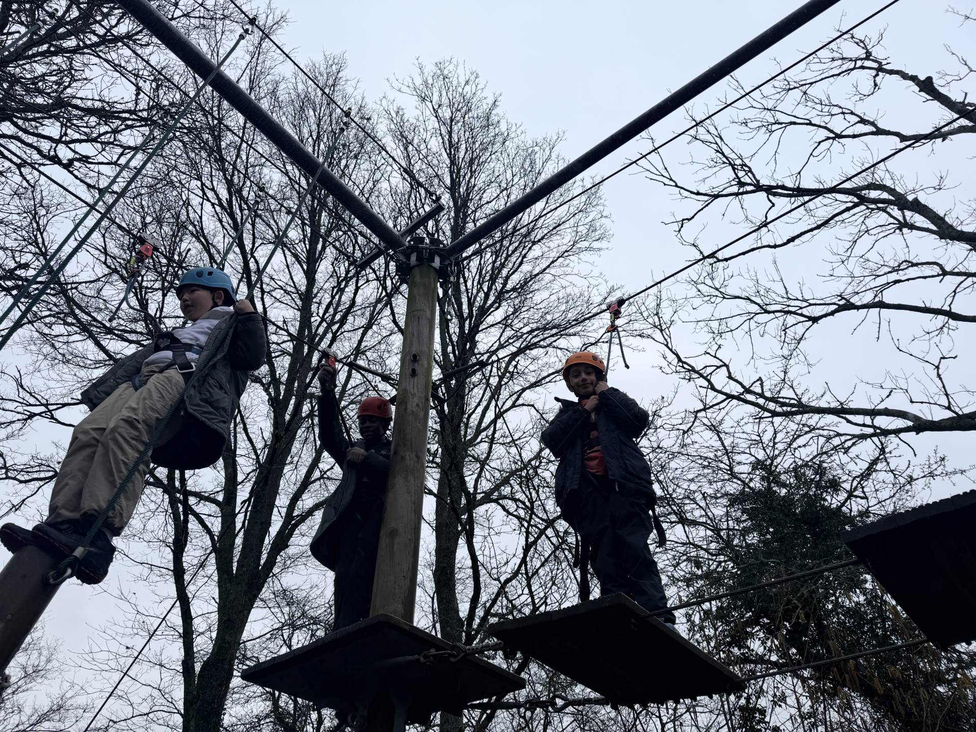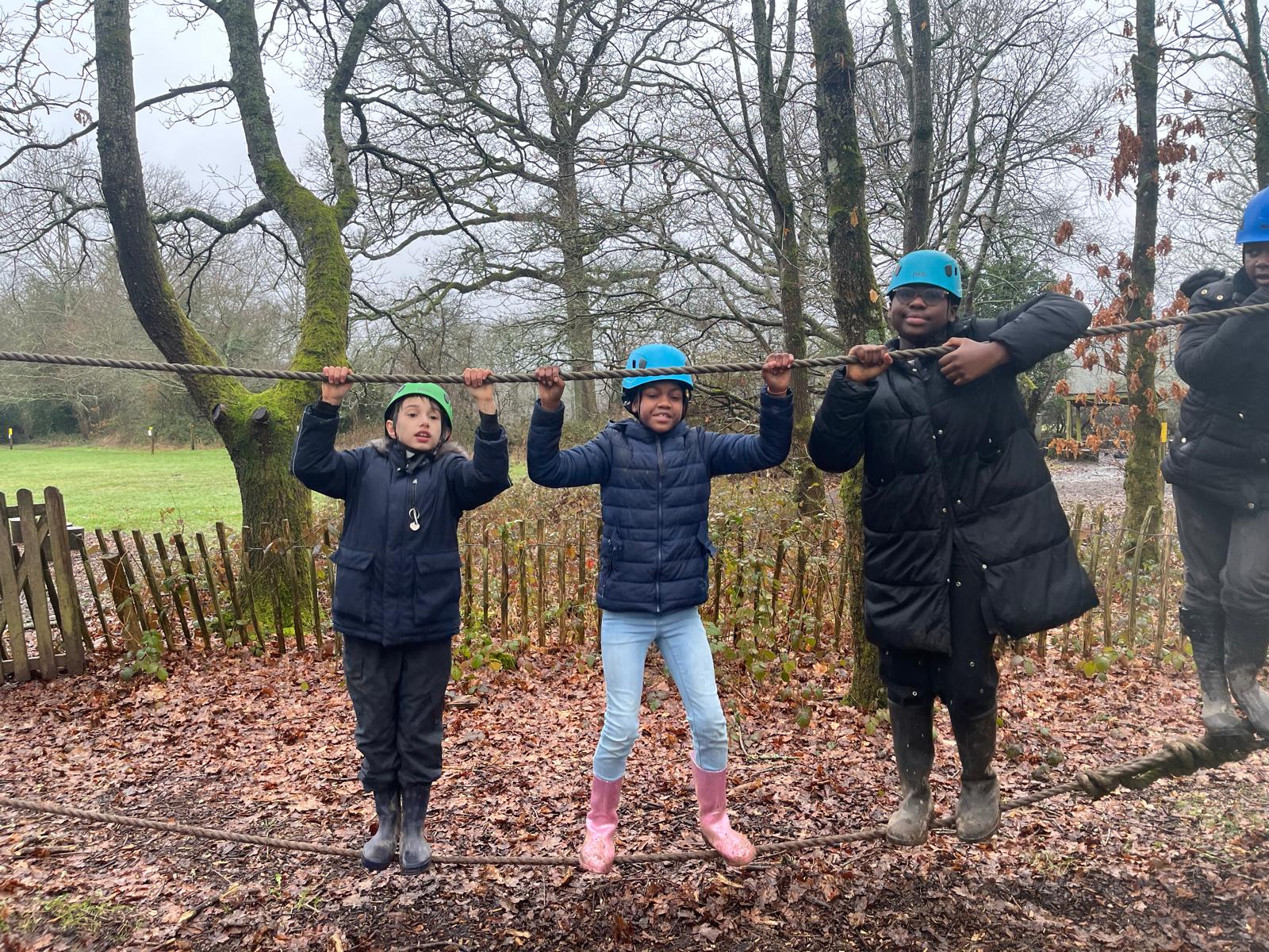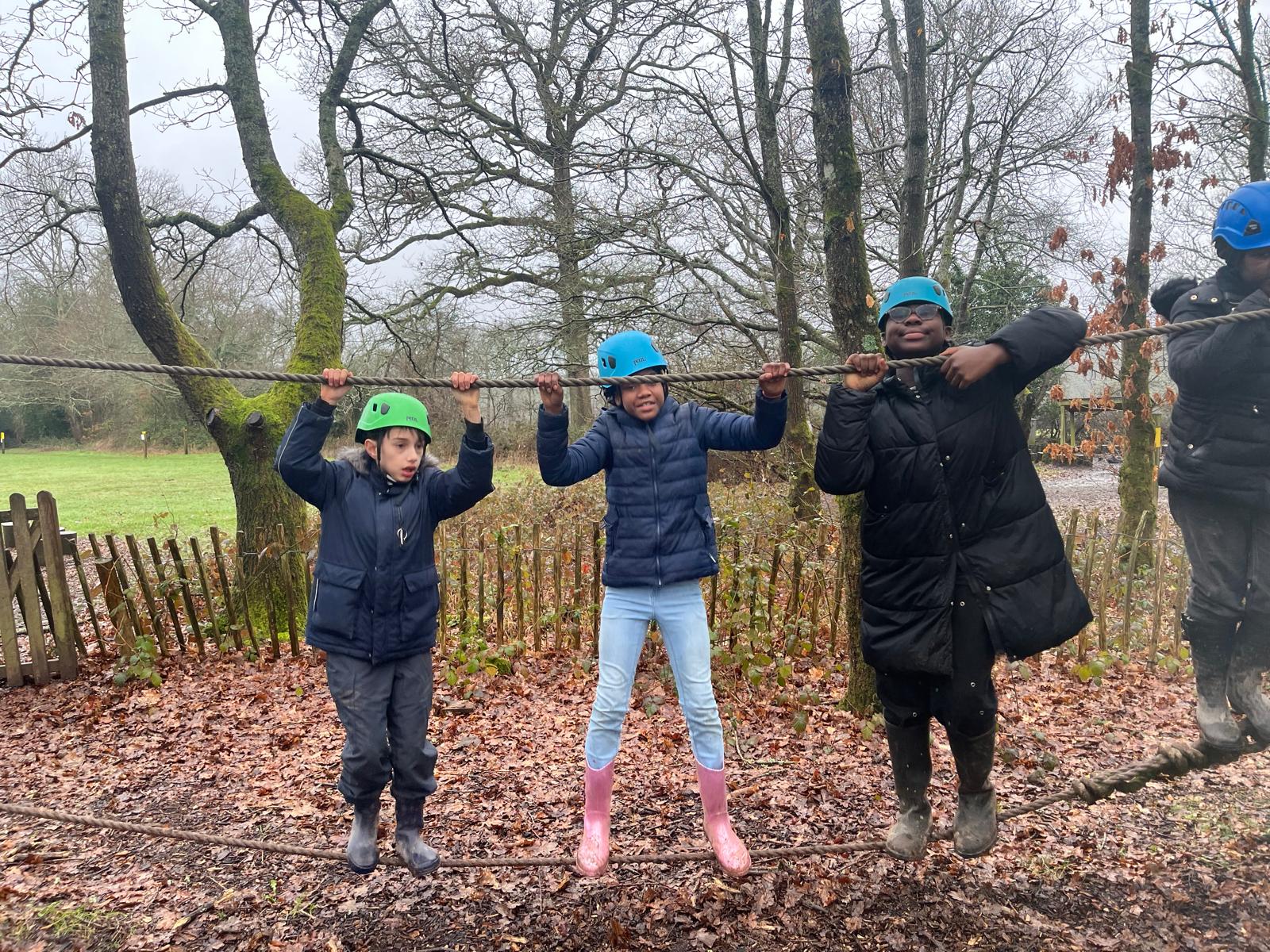 We split into our groups and battled against the rain to trek through the mud to the Challenge Course first. We had to work as a team to complete a tricky set of tasks without touching the ground. It was especially hard in the rain, but we managed to work together to move large planks across mud to find our way through the obstacle course. We loved pushing ourselves to think creatively to find solutions to new problems.