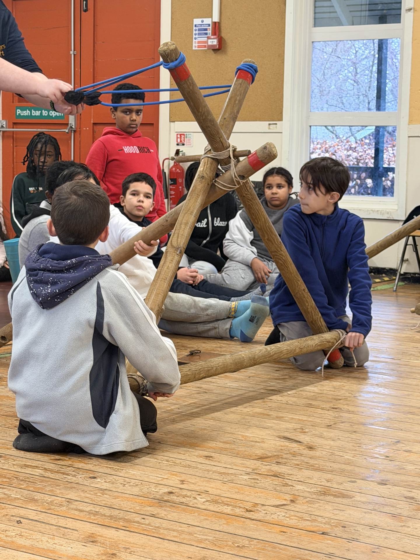 In the afternoon, we opted for an indoor challenge in the form of a catapult challenge. We worked in teams of 8 to build a catapult from wooden poles. We then had to aim bean bags at foam towers to knock them down. We were pretty handy with a catapult! It was great fun.