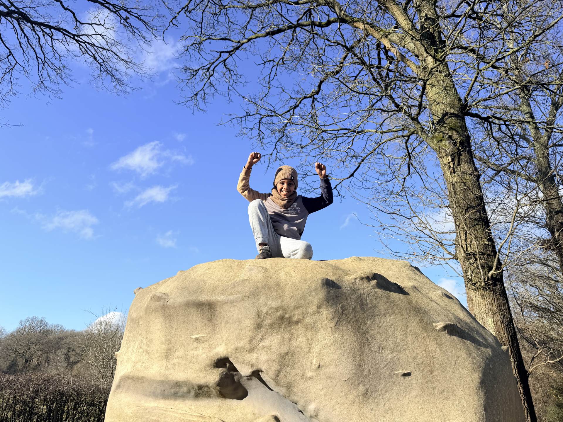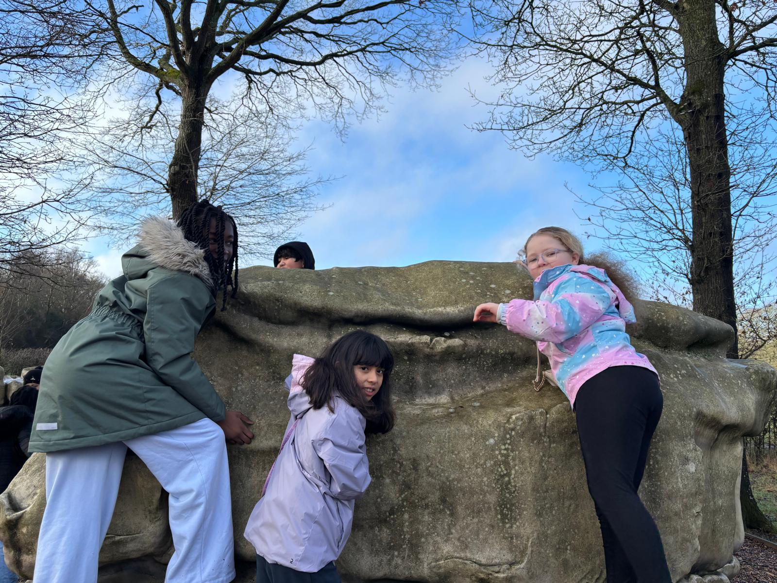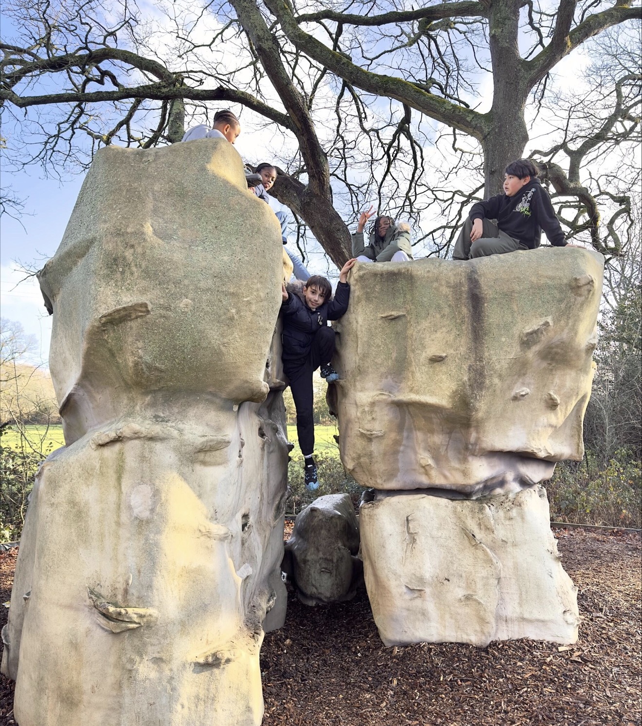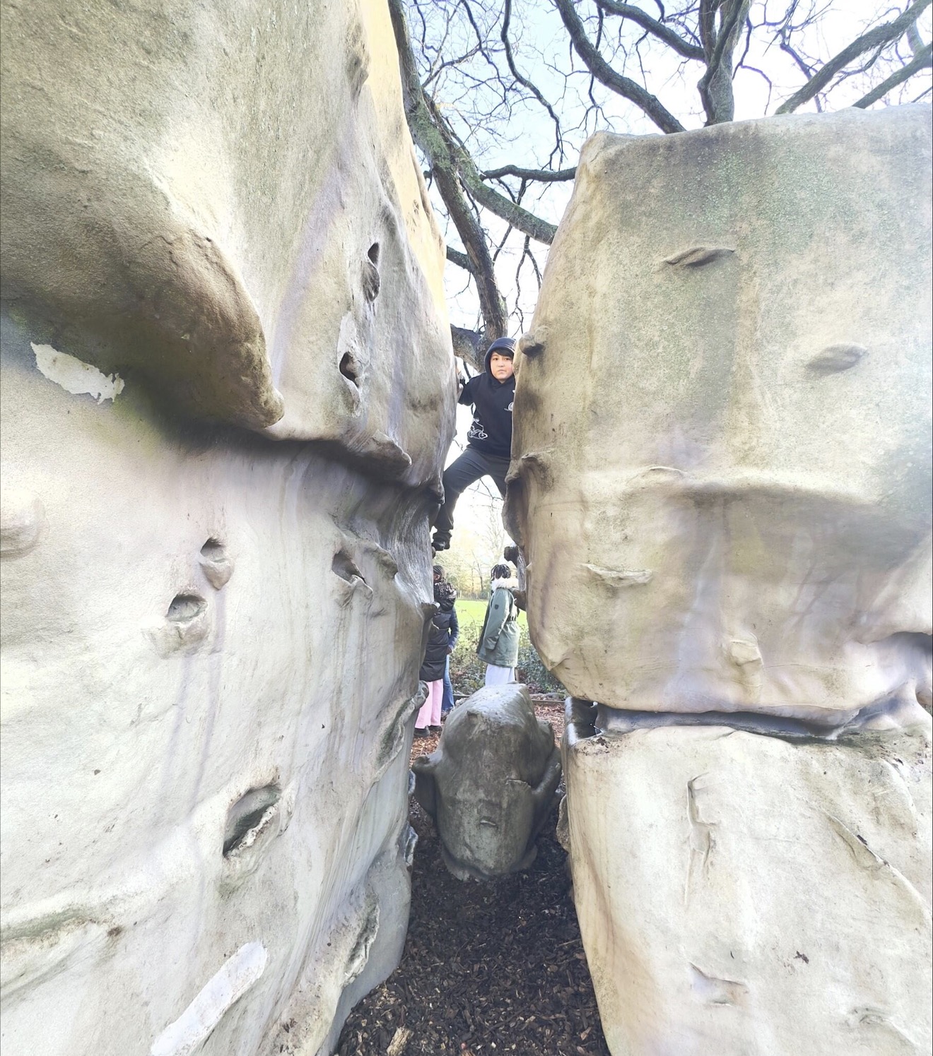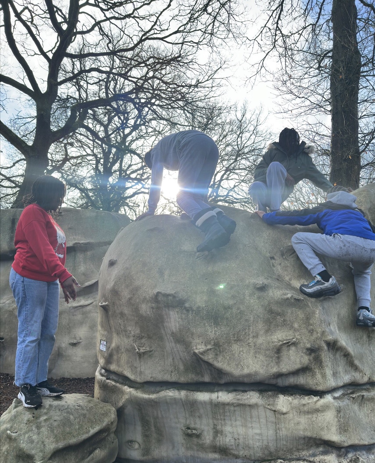 Today was VERY busy, but also really fun. First, we did bouldering, which is where you climb up huge man-made rocks. Some of them felt really high and a bit scary at first, but everyone tried their best and cheered each other on.