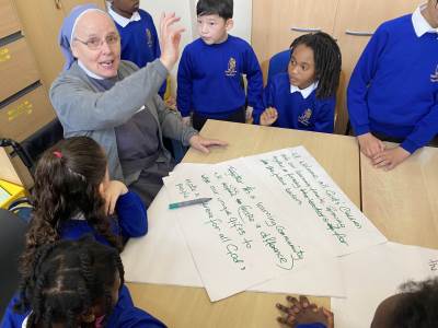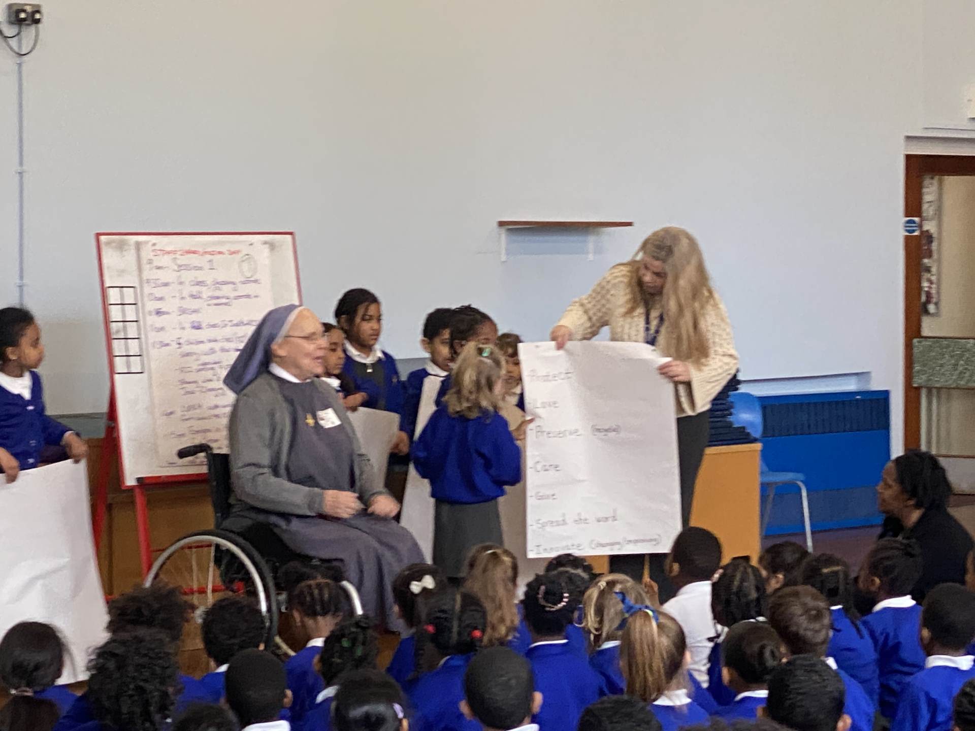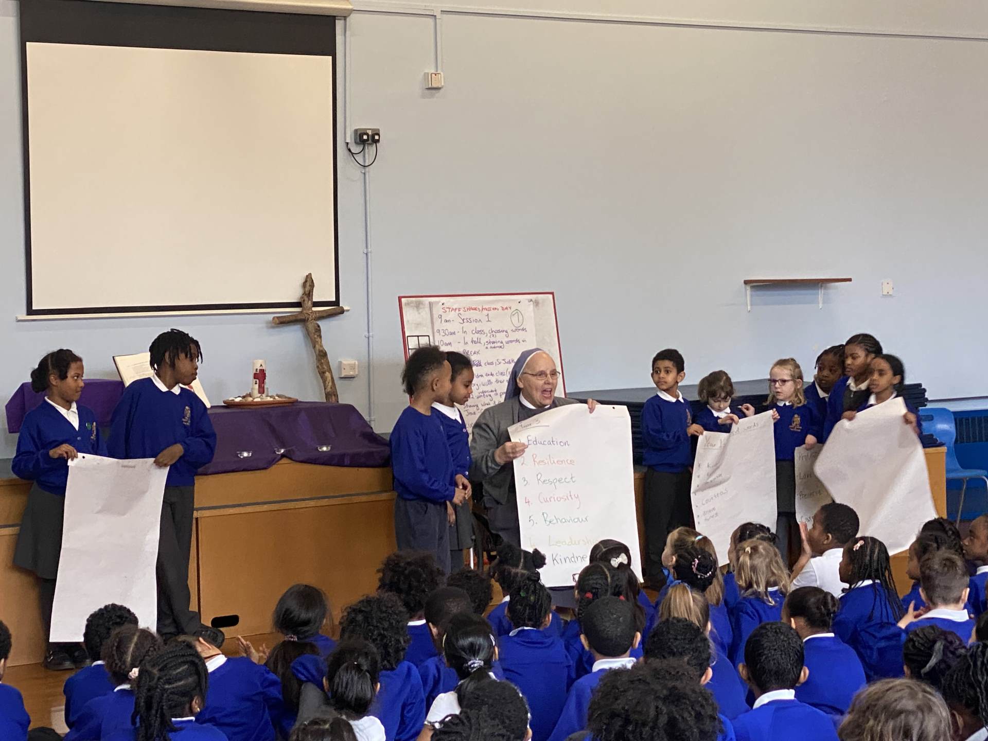 We ended the Spring term this year by focussing on our identity, vision and mission. The whole school community shared a Mission Day facilitated by Sister Judith from EducareM and led by the children. The children impressed everyone with their thoughts, ideas and valuable contributions. After much input, deliberation and discussion two versions of a school Mission Statement were proposed and children presented a manifesto on each. Subsequently, the whole school community, including governors, voted for their preferred statement which was then ratified by the full governing body.