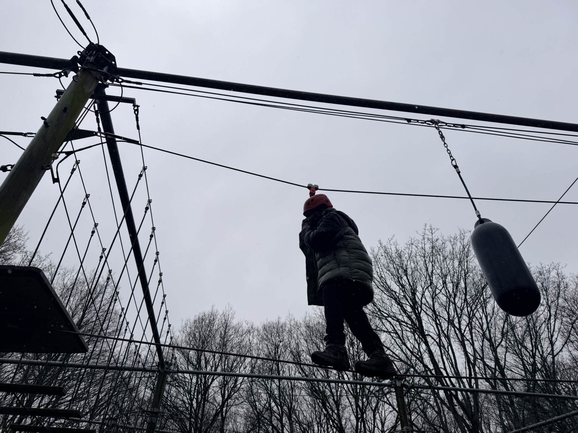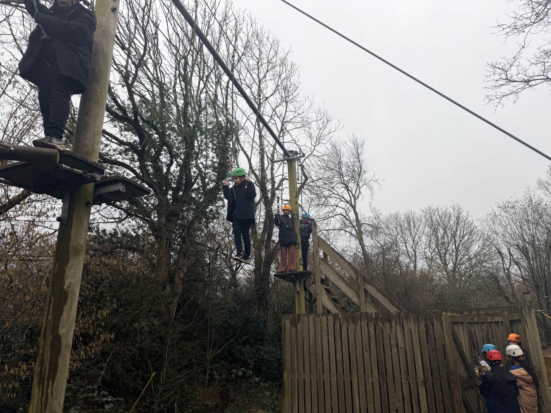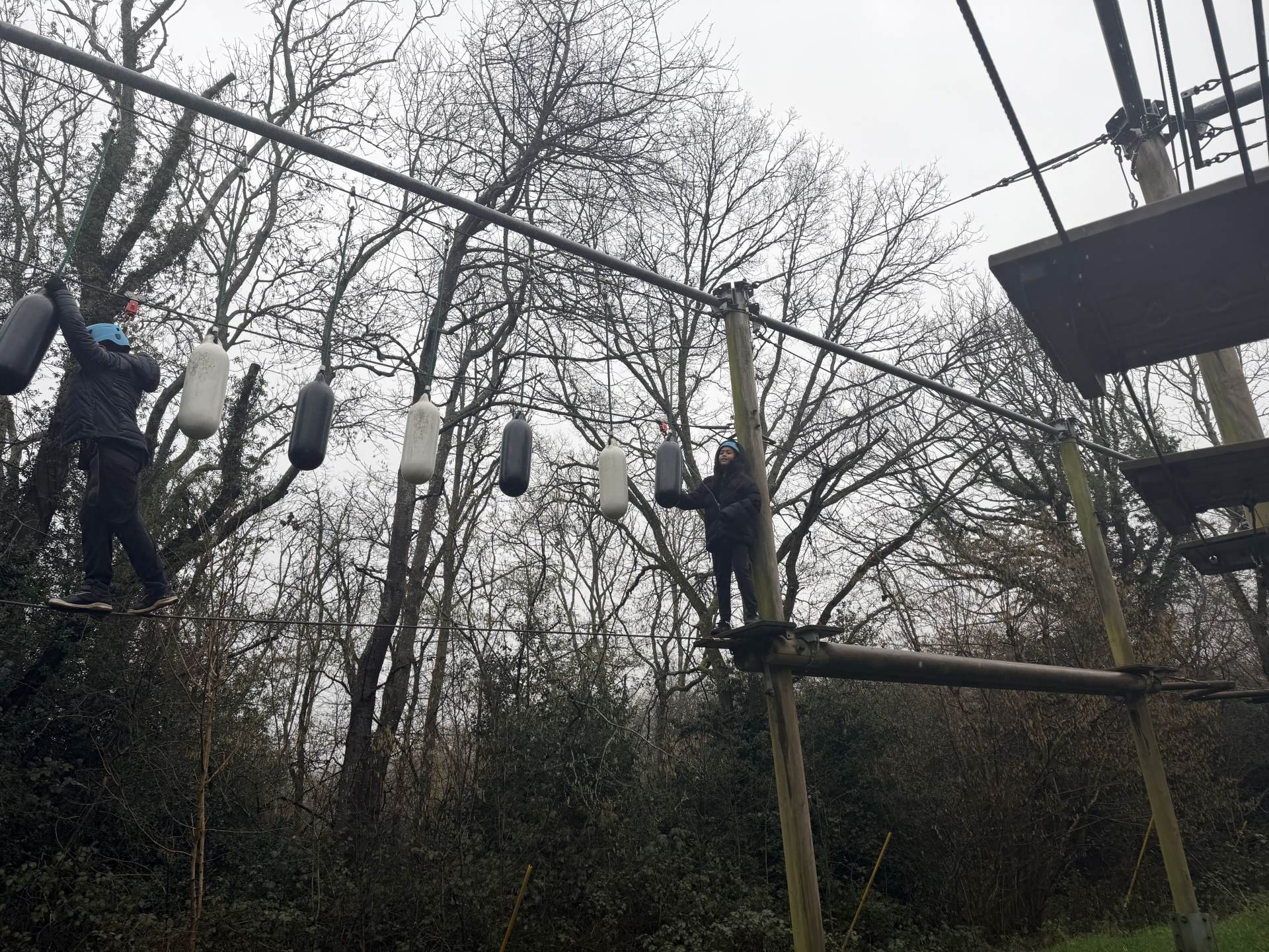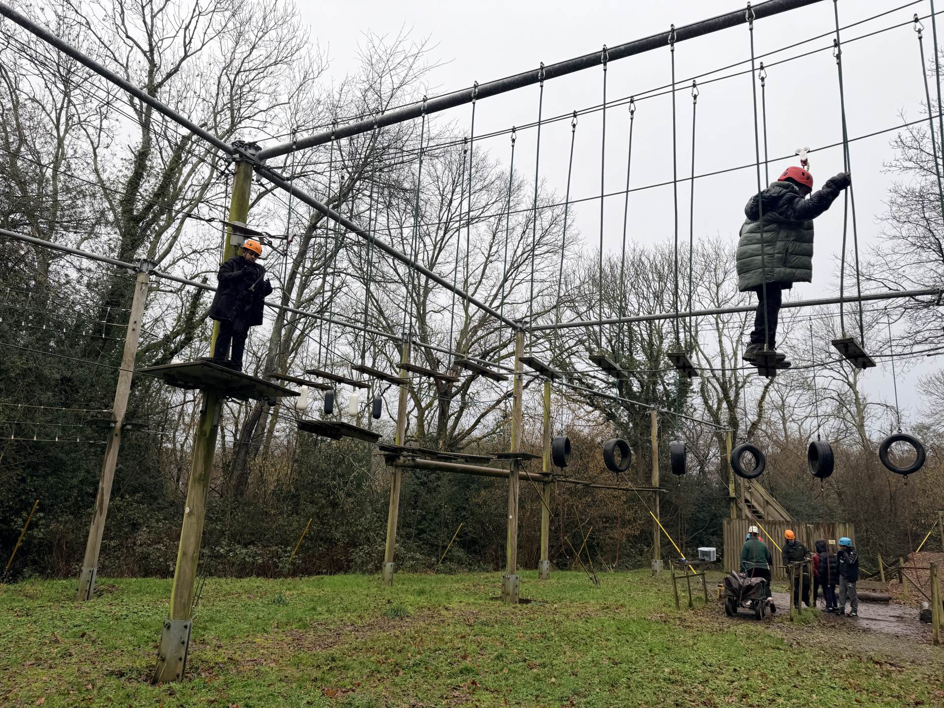 We split into our groups and battled against the rain to trek through the mud to the Challenge Course first. We had to work as a team to complete a tricky set of tasks without touching the ground. It was especially hard in the rain, but we managed to work together to move large planks across mud to find our way through the obstacle course. We loved pushing ourselves to think creatively to find solutions to new problems.