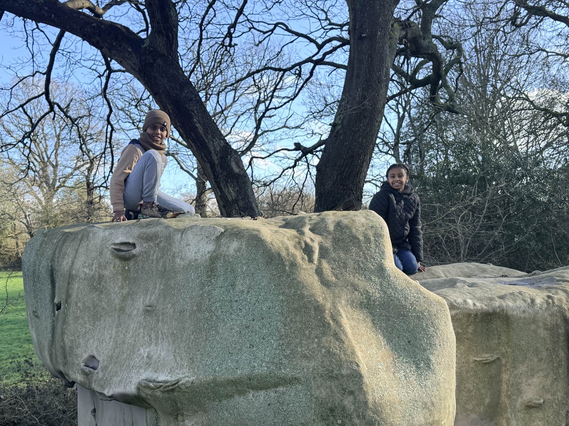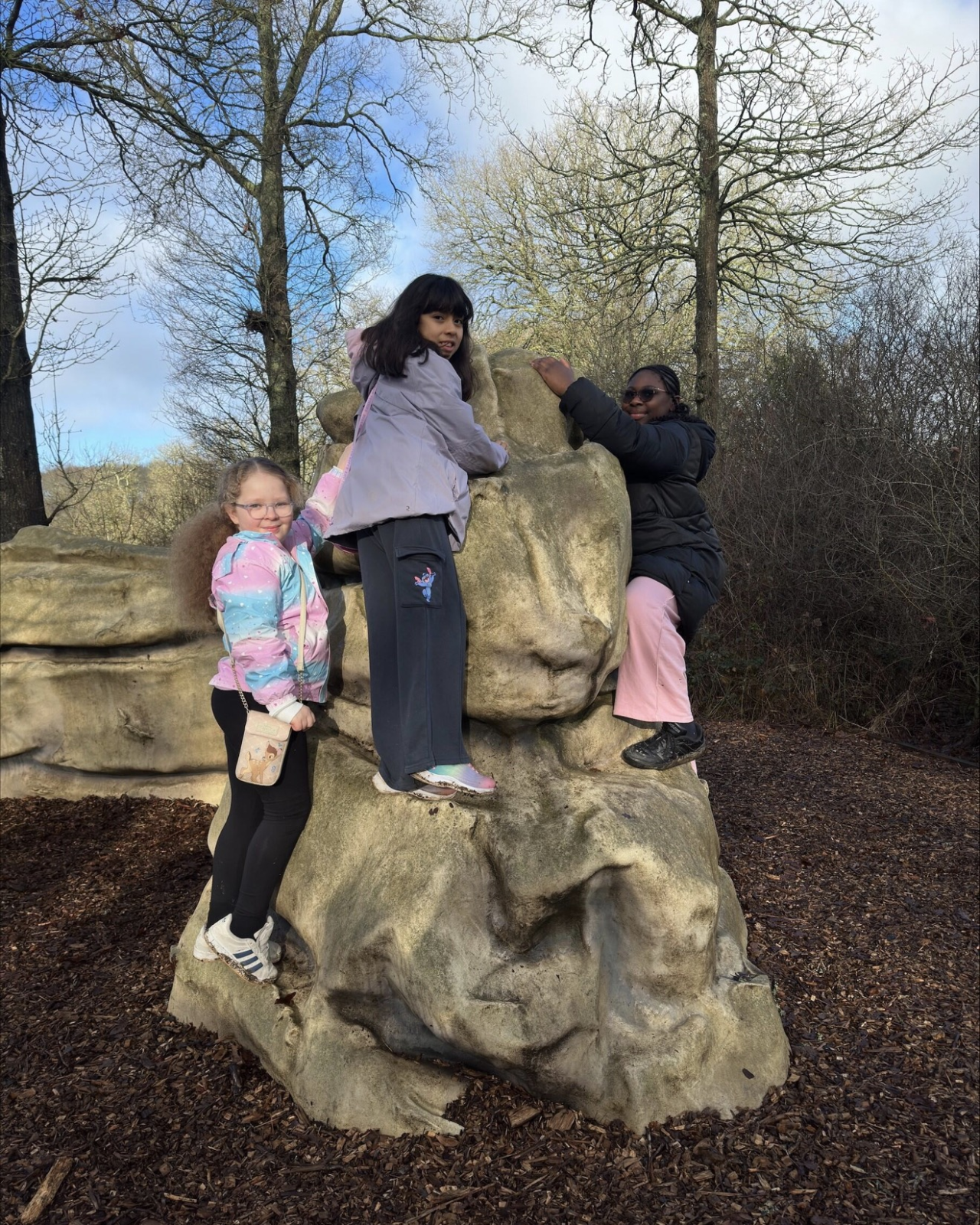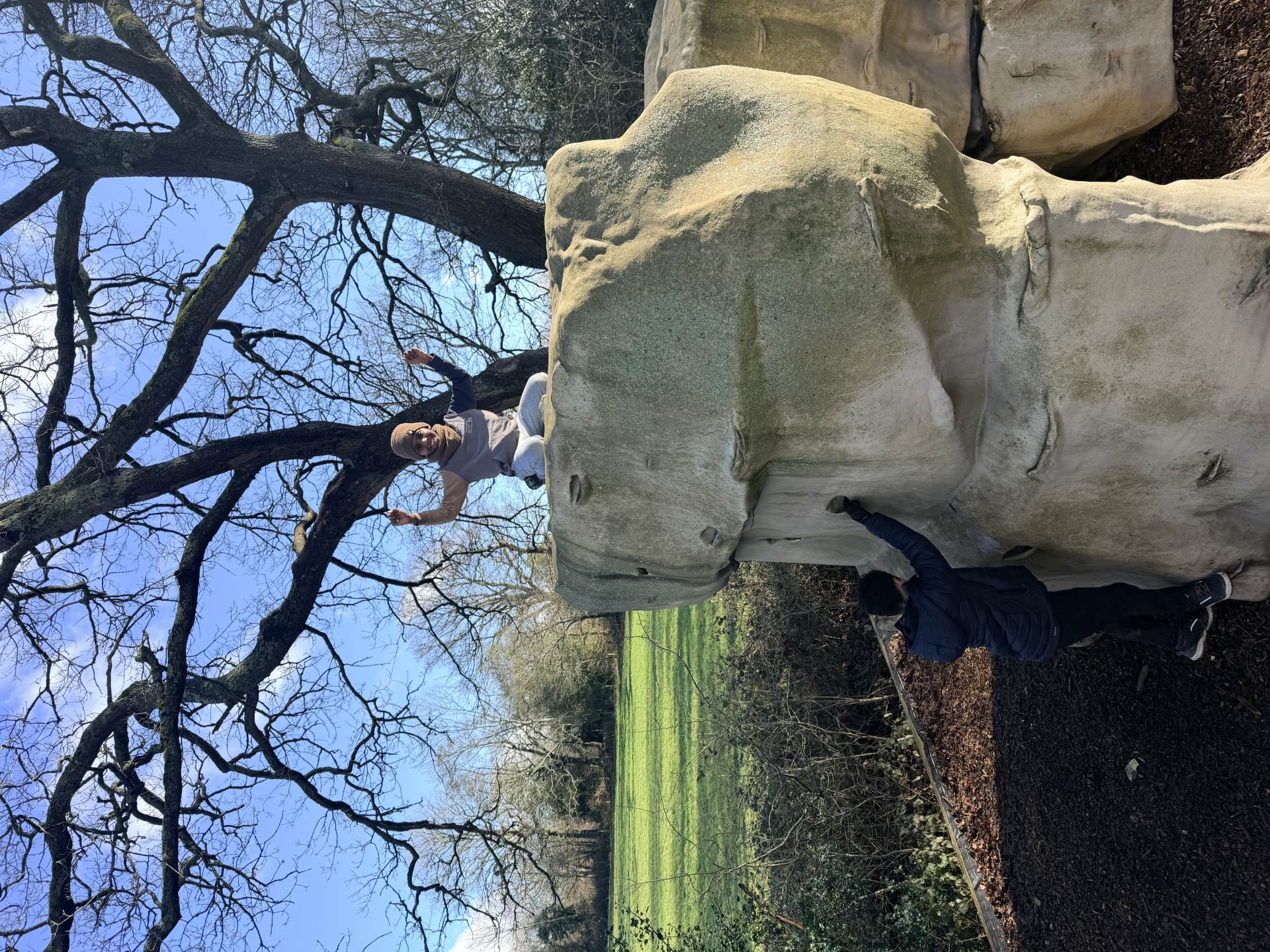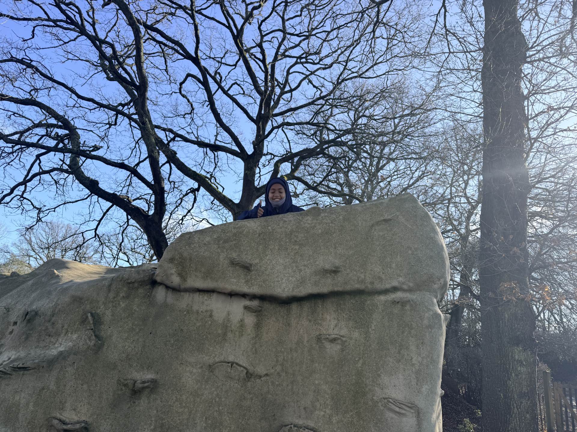 Today was VERY busy, but also really fun. First, we did bouldering, which is where you climb up huge man-made rocks. Some of them felt really high and a bit scary at first, but everyone tried their best and cheered each other on.