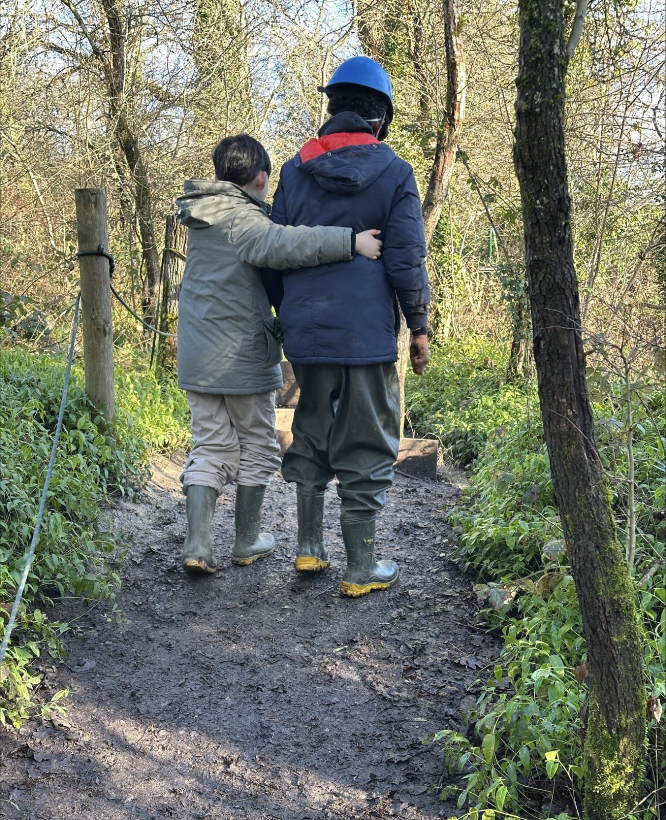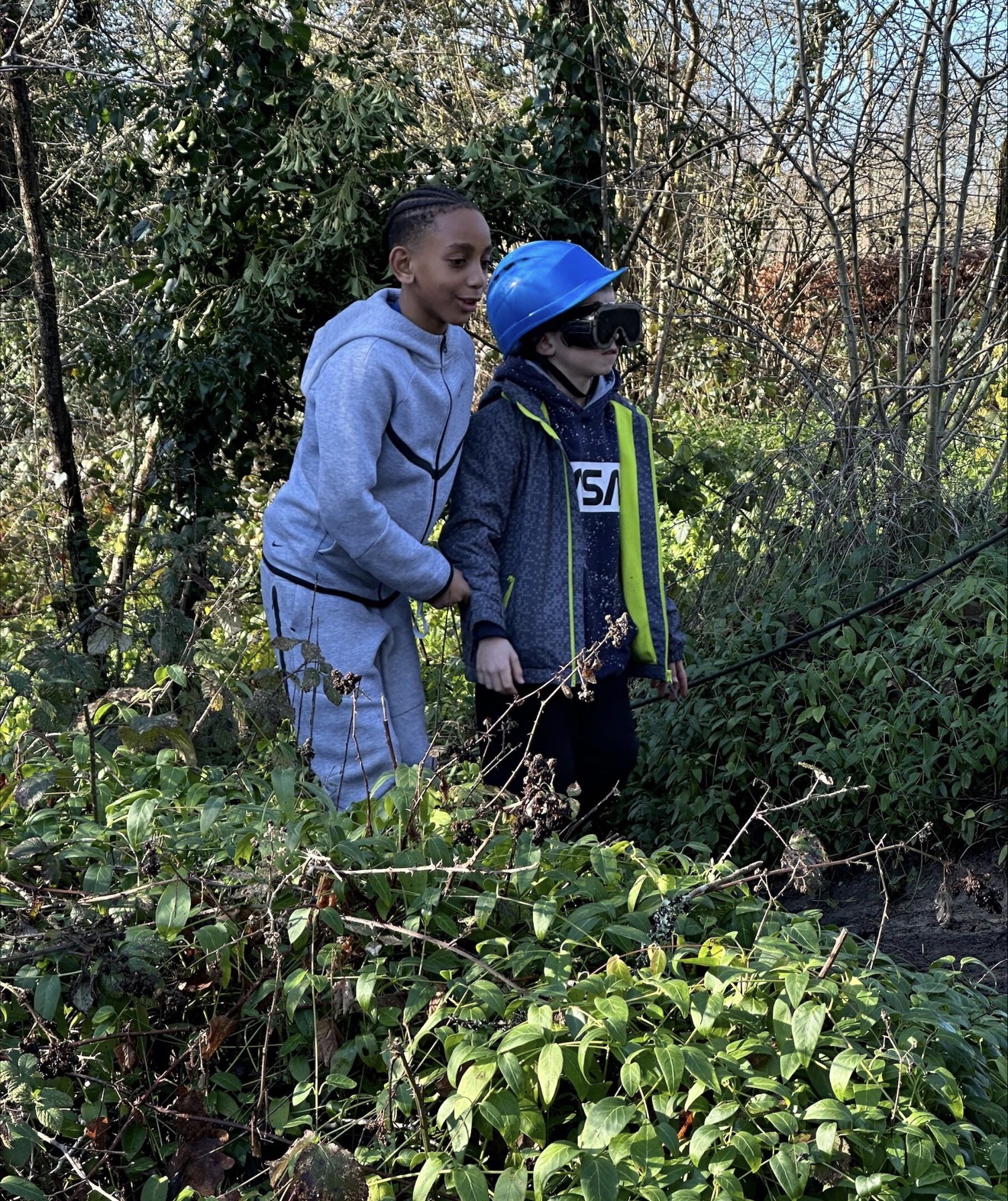 After that, we did a blindfold trail. One person had to wear a blindfold while their partner guided them through obstacles. It was tricky because you had to really listen and trust your partner. There were a few wrong turns and some muddy falls, but lots of laughing too!